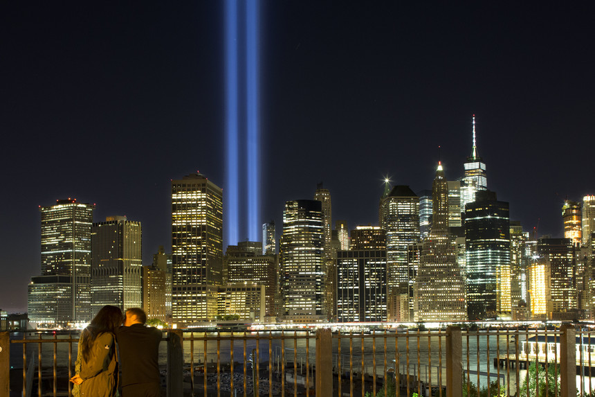 O "Tribute in Light" é um tributo à memória das vítimas do 11 de Setembro de 2001, em Nova Iorque. Os dois pilares azuis de luz representam as Torres Gémeas, destruídas no atentado.