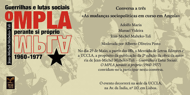No dia 29 de maio, a partir das 18 horas, a Mercado de Letras Editores e a UCCLA, a propósito da publicação da 2.ªedição da obra “Guerrilhas e Lutas Sociais. O MPLA perante si próprio (1960-1977)” da autoria de Jean-Michel Mabeko-Tali, promovem o debate “Conversa a três” sobre o tema “As mudanças sociopolíticas em curso em Angola”, na UCCLA.